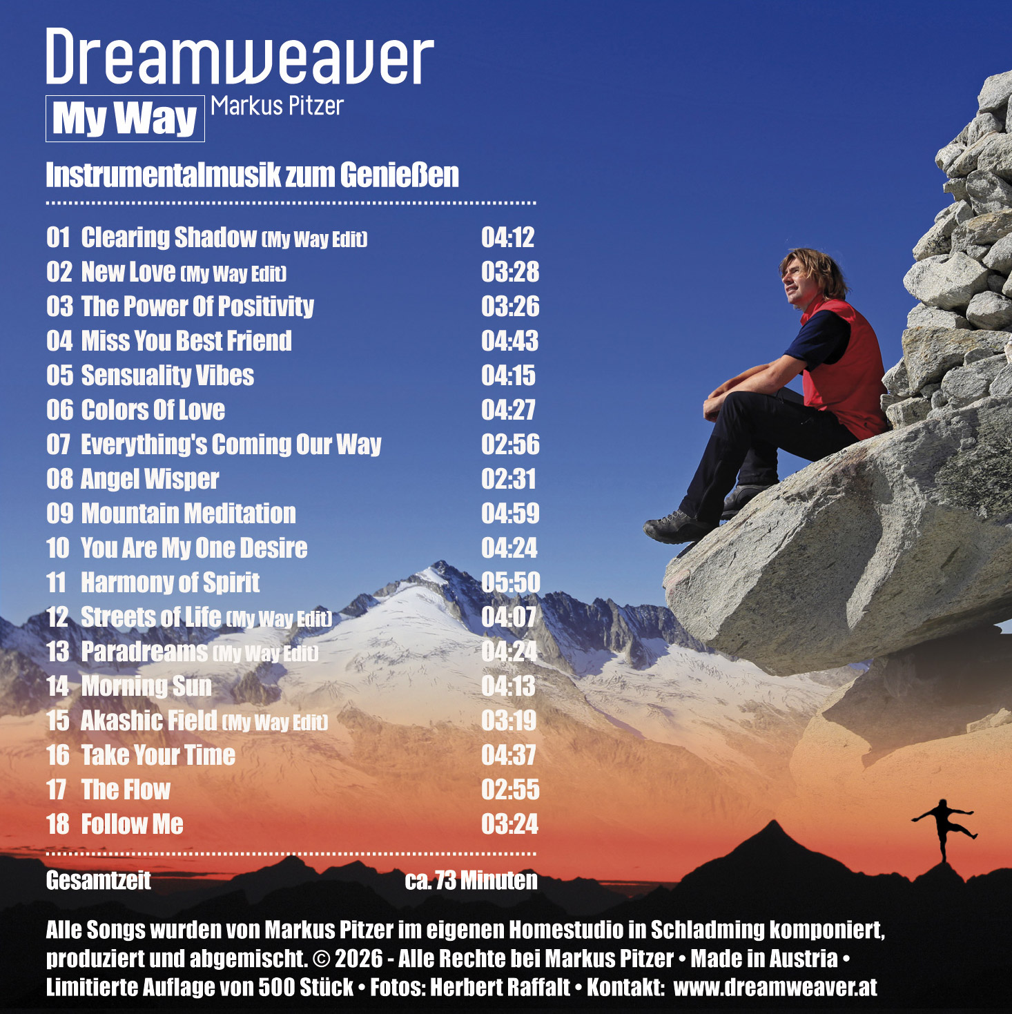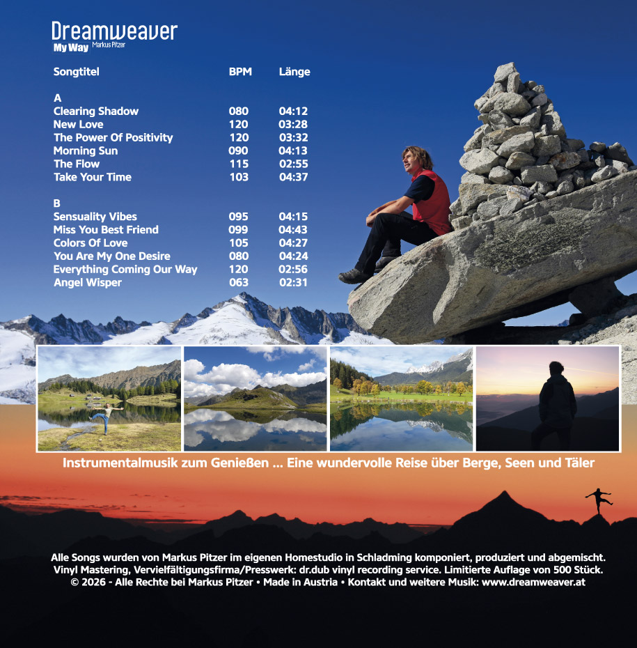 Dreamweaver, My Way - Markus Pitzer will be released as both a vinyl edition (record) and an audio CD with bonus tracks in a limited edition of only 500 copies each – a special collector's item for lovers of chillout tracks, fans and all those who want to not only hear music, but experience it.